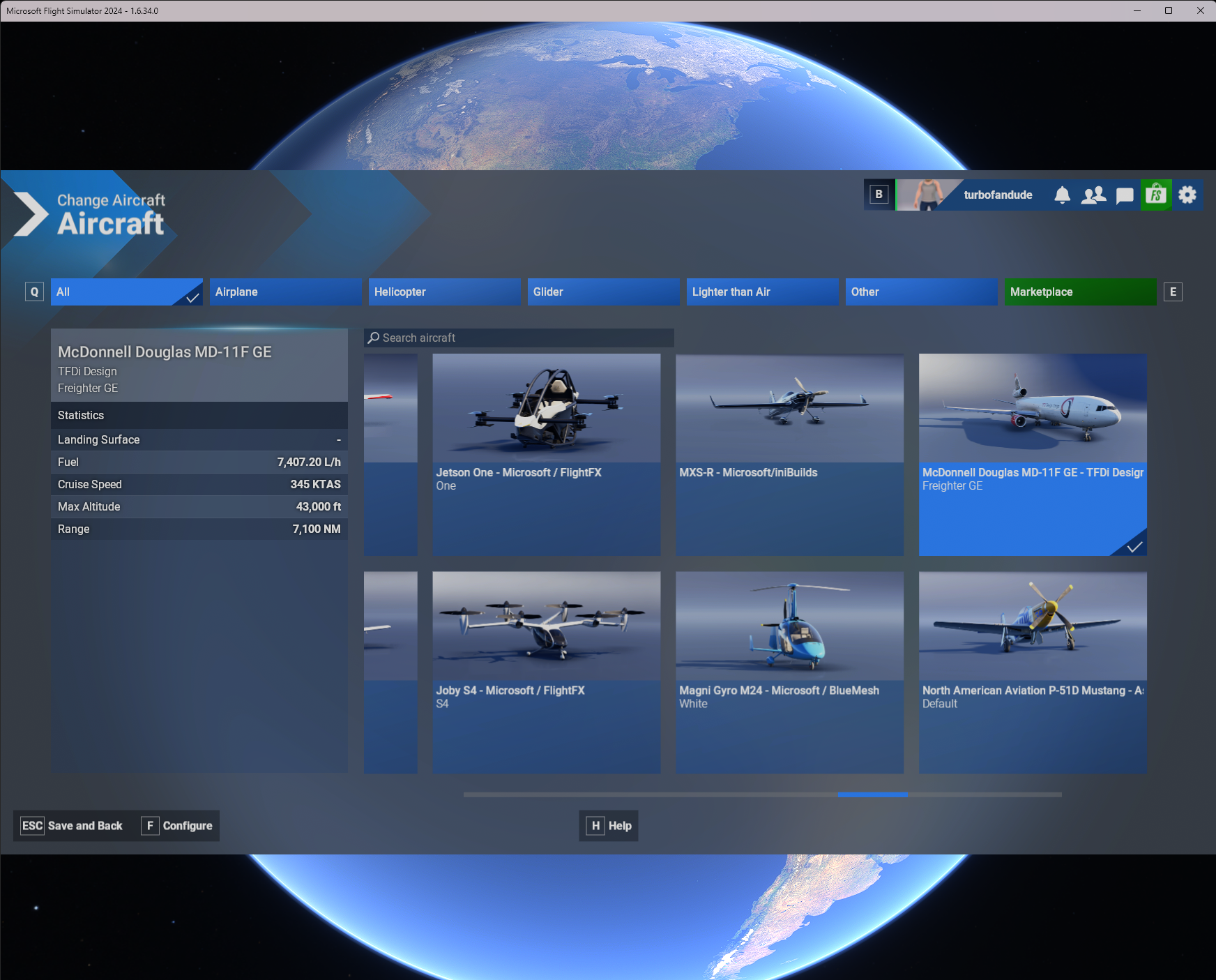 5) Select the MD-11 in the aircraft selection menu and click 'Configure':