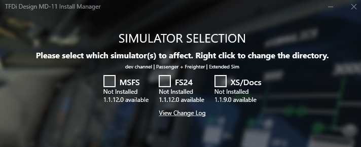Here you will be presented with a variety of choices based on your license. For the purposes of this support article we will only discuss the MD-11 for Microsoft Flight Simulator 2020, Microsoft Flight Simulator 2024 and the Extended Simulations add-on.
