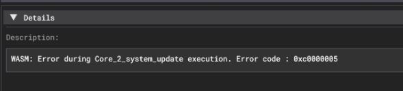A WASM crash will not allows populate the orange screens on all the DUs with an error message.